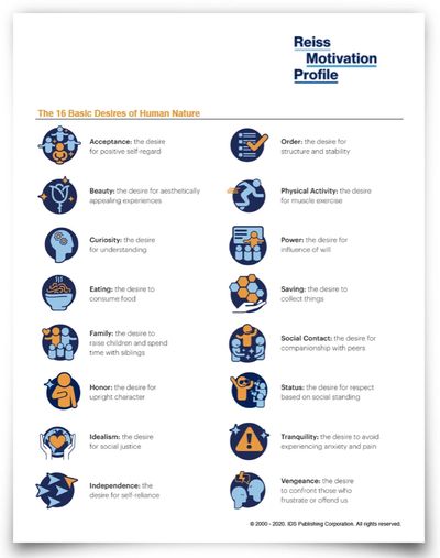 Like a fingerprint, each human being has his individual motivation profile that shows information on the expression of the 16 basic desires.